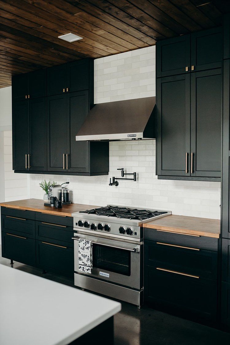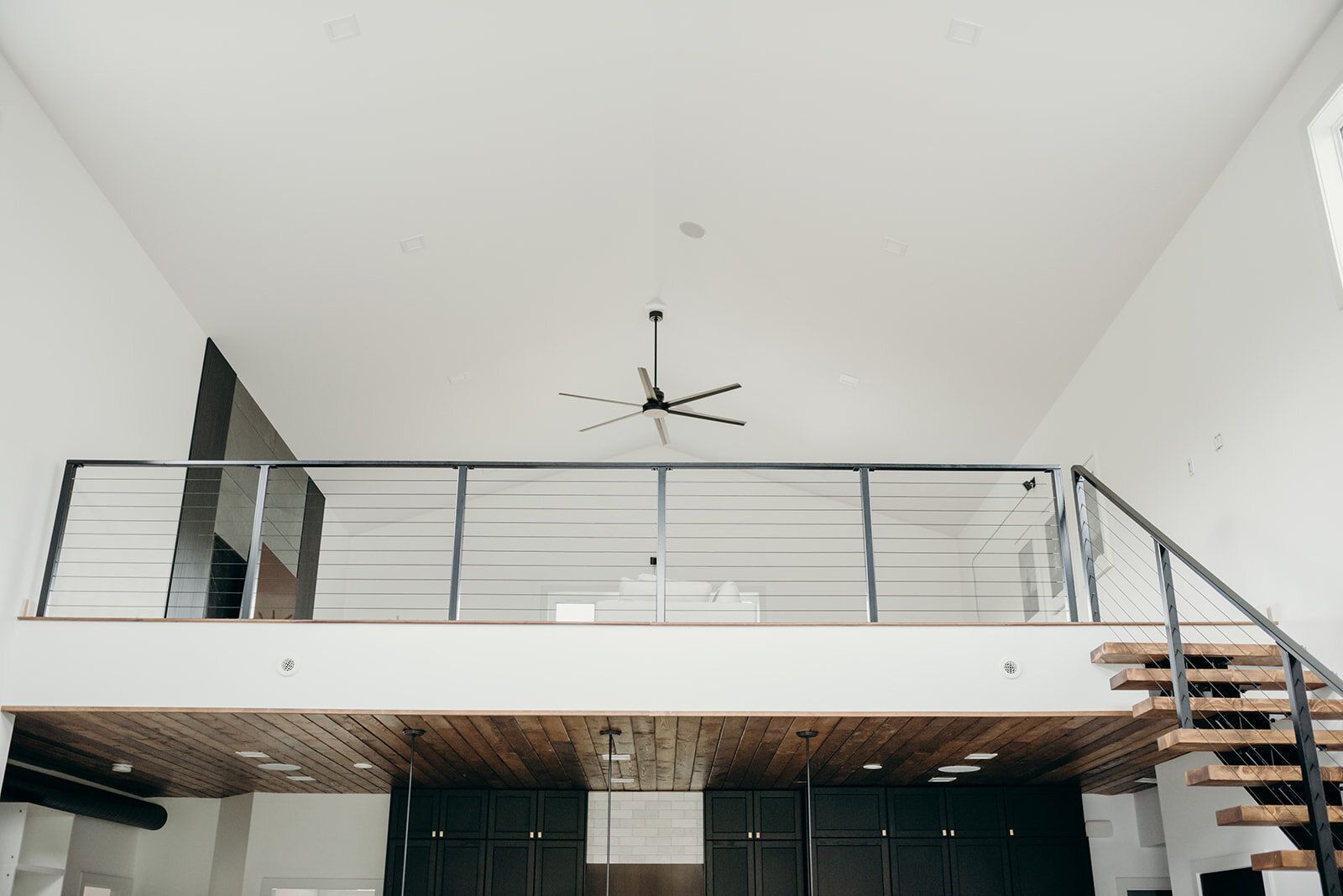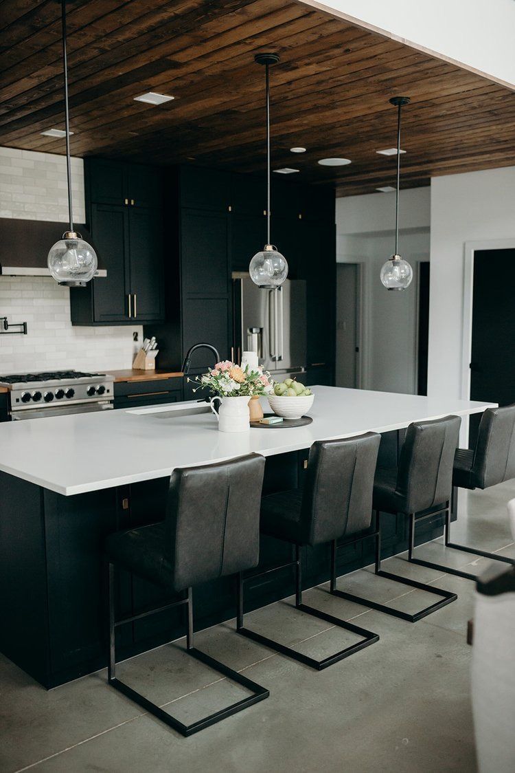 The foundational style of this new build is modern farmhouse. It’s on a farm yard, so it’s naturally a part of their home. But, their finishing choices definitely air on the side of modern. Concrete floors, exposed staircase, and black cabinets all play into the modern feel.