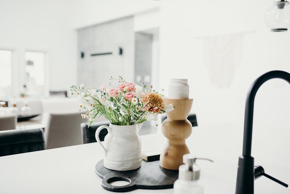 Pitcher & Candlestick: Liliidae Home & Design / Candle & Flowers: Mel-City / Cutting Board: Indigo